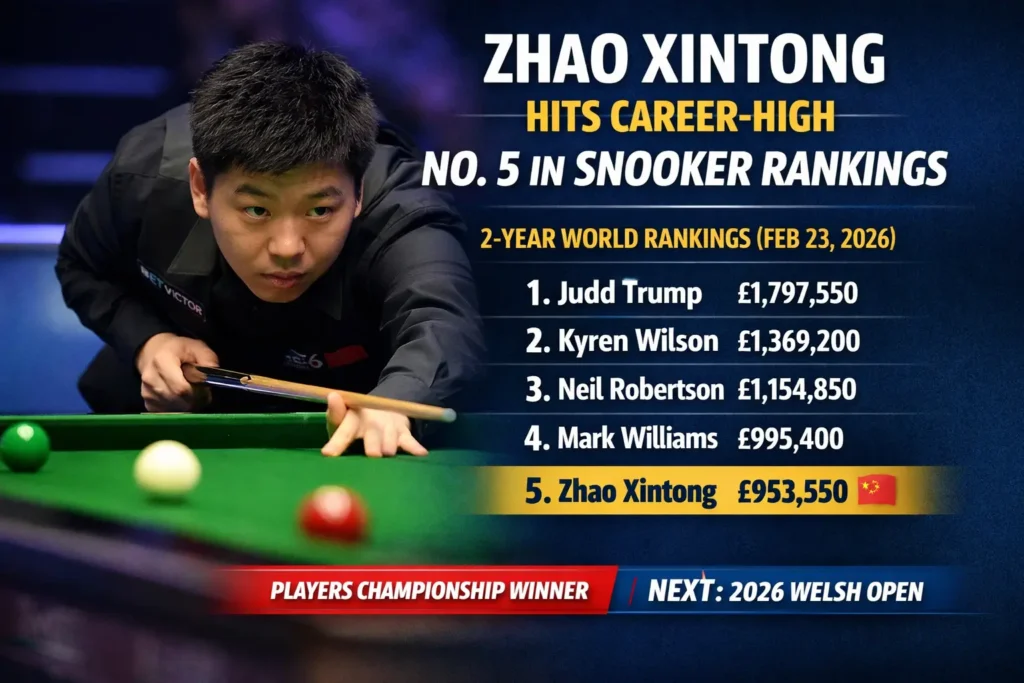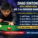 Zhao Xintong’s Rise to the Top Five Zhao Xintong has reached a new career-high, climbing to number five in the official snooker…