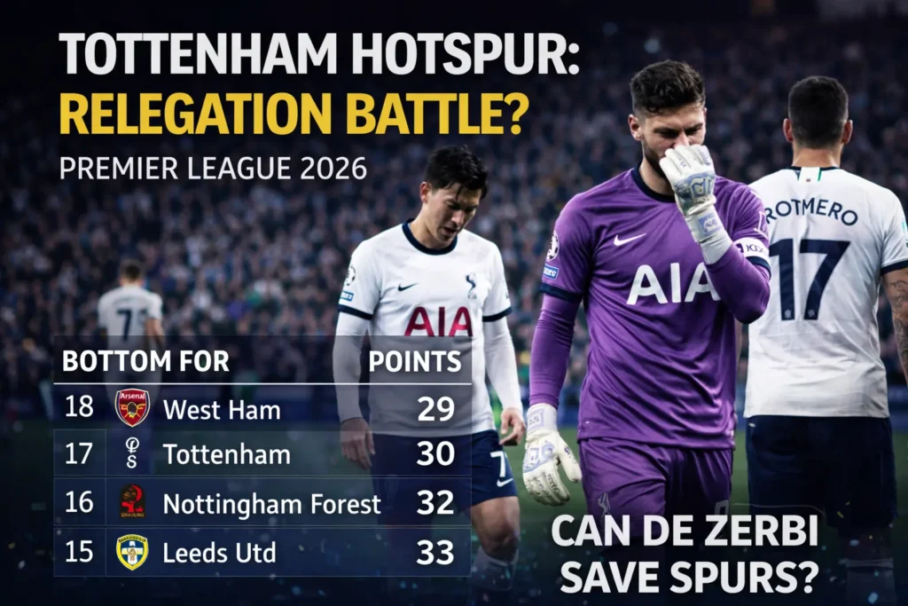 Say it slowly. Tottenham Hotspur. Relegation battle. Premier League. 2026.