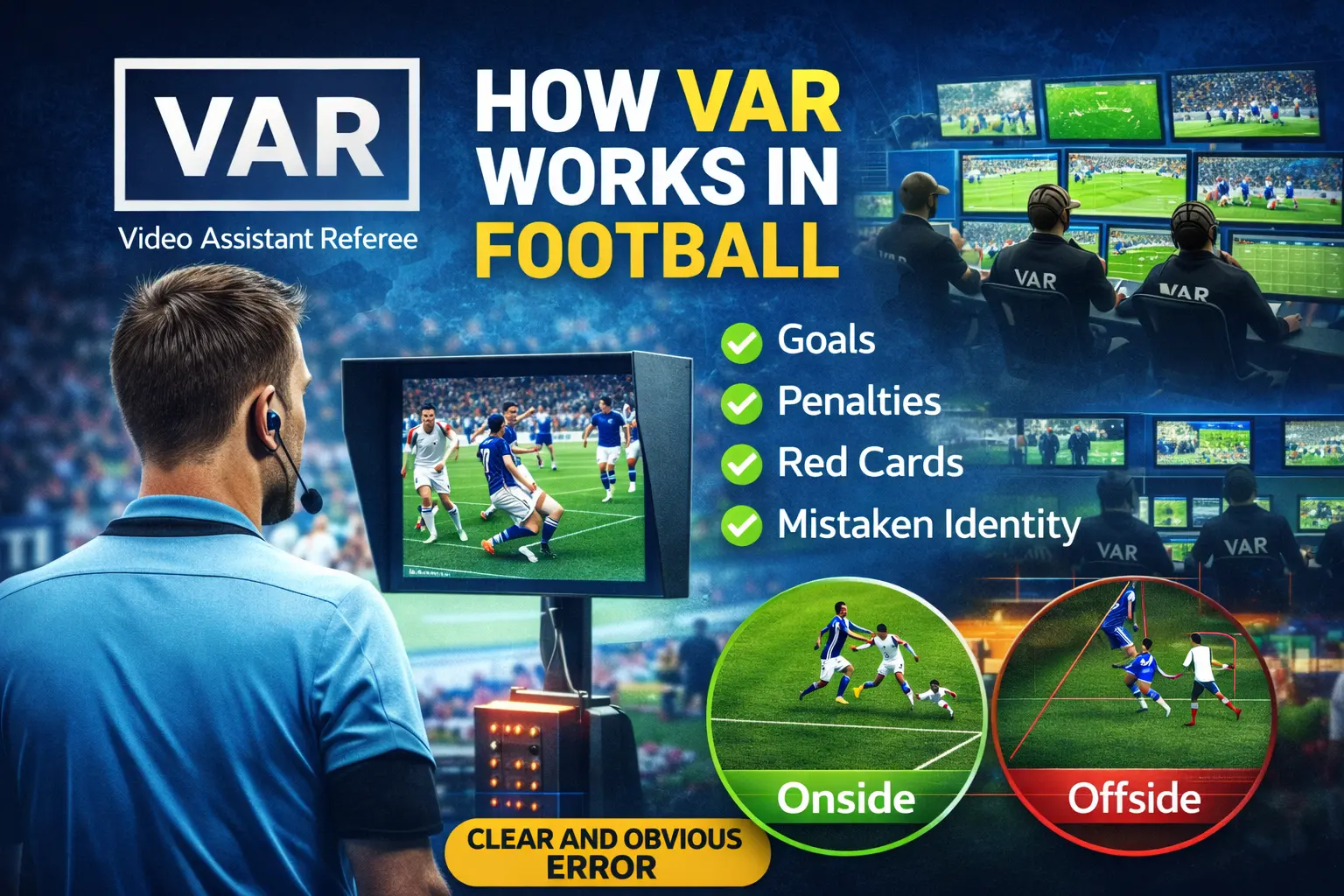 Video Assistant Referee (VAR) is a “safety net” for the referee on the pitch. Even though football is fast-paced, VAR ensures that massive, game-changing mistakes are caught and corrected.